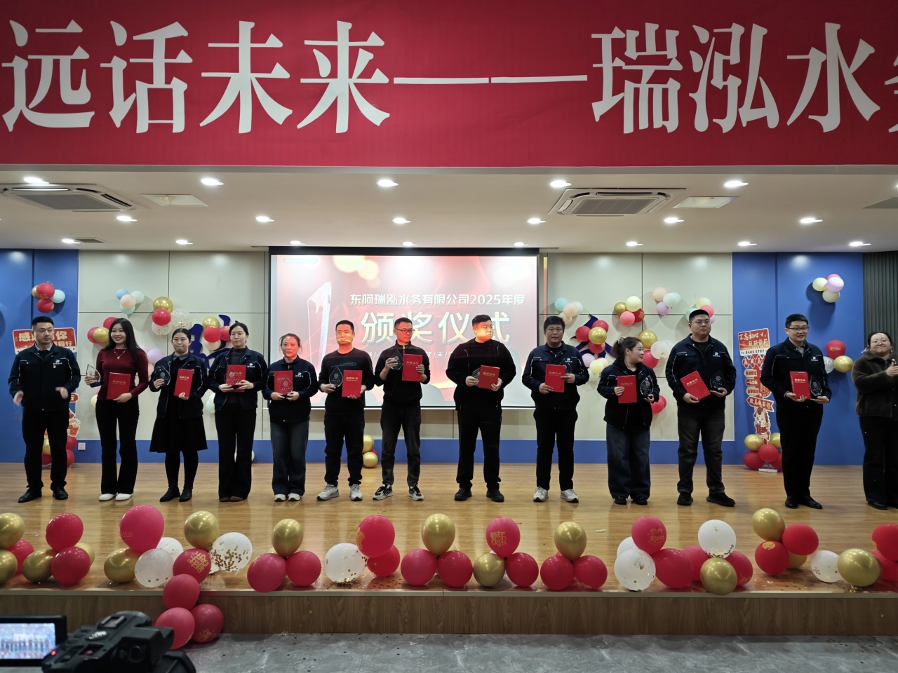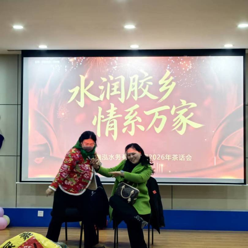 金鞍启岁,福水迎春。2026 年丙午马年新春将至,2月14日上午,东阿瑞泓水务有限公司举办新年职工茶话会,全体职工欢聚一堂,共贺新春。本次茶话会以 “水润胶乡润万家,同心致远话未来” 为主题,融合文艺表演、互动游戏、幸运抽奖与评优颁奖等环节,既是对全体职工 2025 年坚守供水岗位、践行民生使命的温情致敬,也为公司新一年高质量发展凝聚奋进力量,现场欢声笑语、暖意融融,尽显瑞泓水务 “一家人” 的温馨与团结。